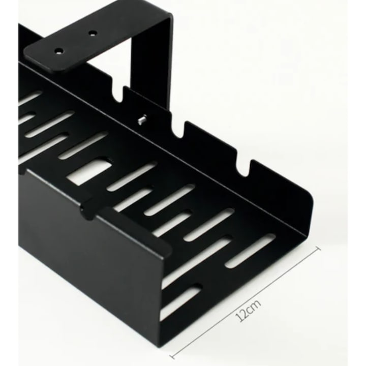 Organizator de cabluri suspendat VarioShop®, raft metalic pentru gestionarea cablurilor sub birou, cu montaj pe blat si design cu ventilatie, 50 cm, Negru