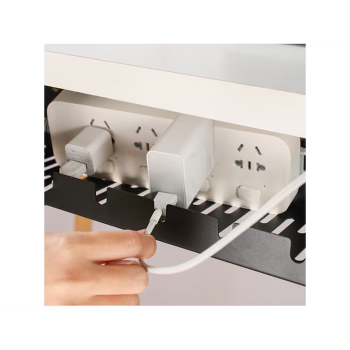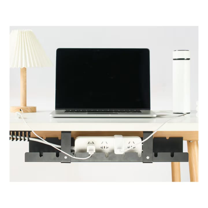Elibereaza spatiul de sub birou si transforma-ti statia de lucru intr-un mediu ordonat, eficient si sigur cu ajutorul acestui organizator suspendat de cabluri. Conceput special pentru a fi montat sub blatul mesei, acest suport ofera o solutie discreta, dar extrem de practica pentru ascunderea si organizarea cablurilor, prelungitoarelor si surselor de alimentare.
