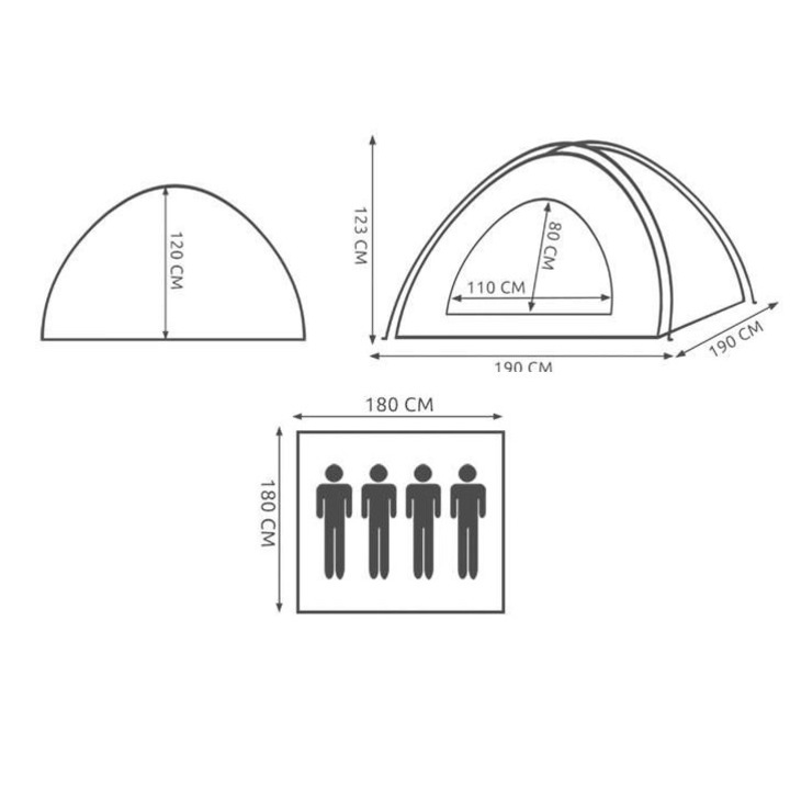 Cu dimensiuni desfacute de 190 x 190 x 123 cm, acest cort ofera suficient spatiu pentru a gazdui confortabil 4 persoane. Dormitorul patrat asigura loc suficient pentru dormit, iar intrarea cu fermoar asigura intimitate si acces facil. Este alegerea ideala pentru excursii de familie sau escapade cu prietenii.