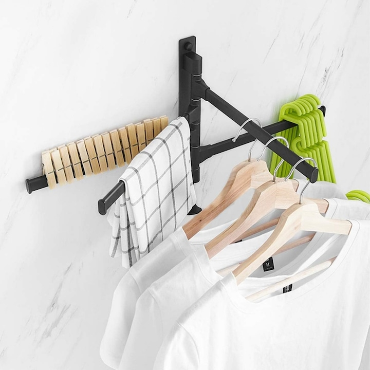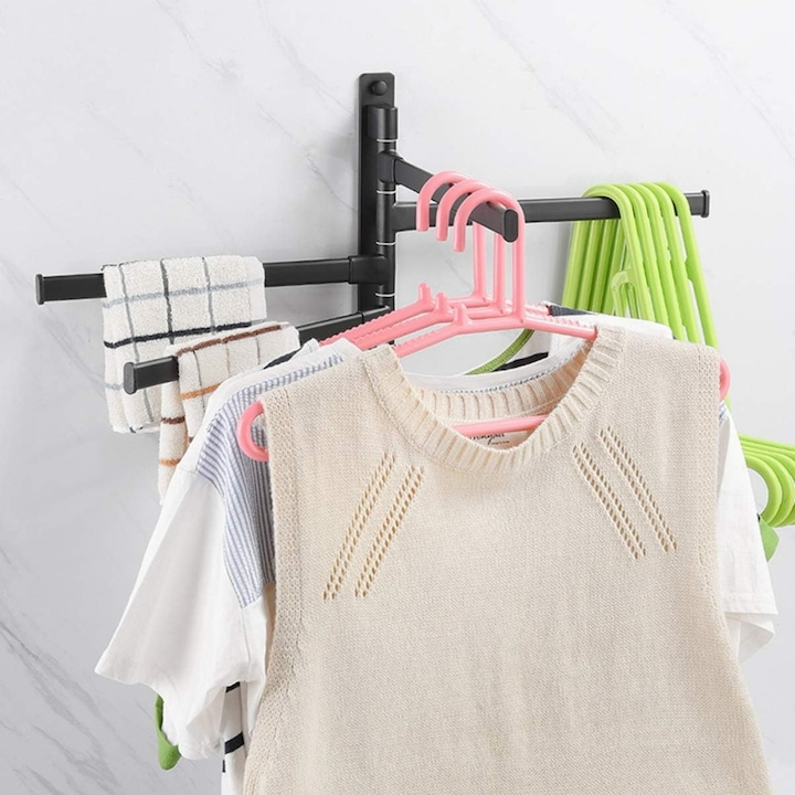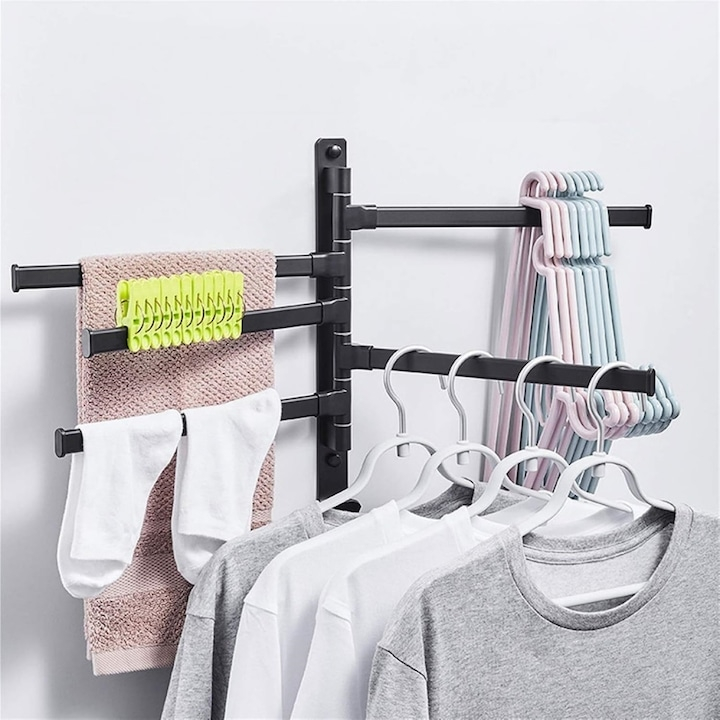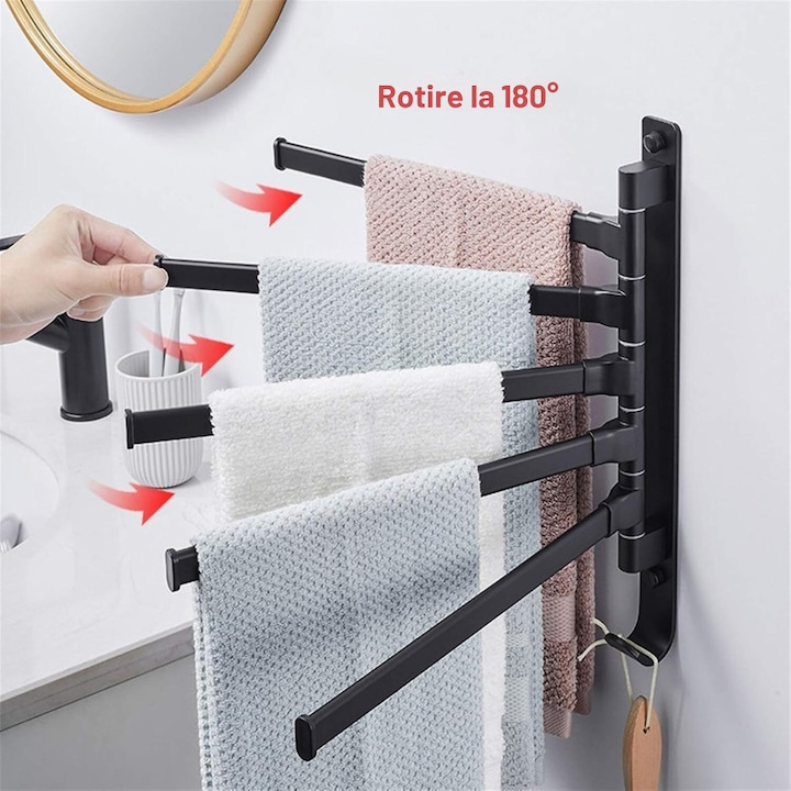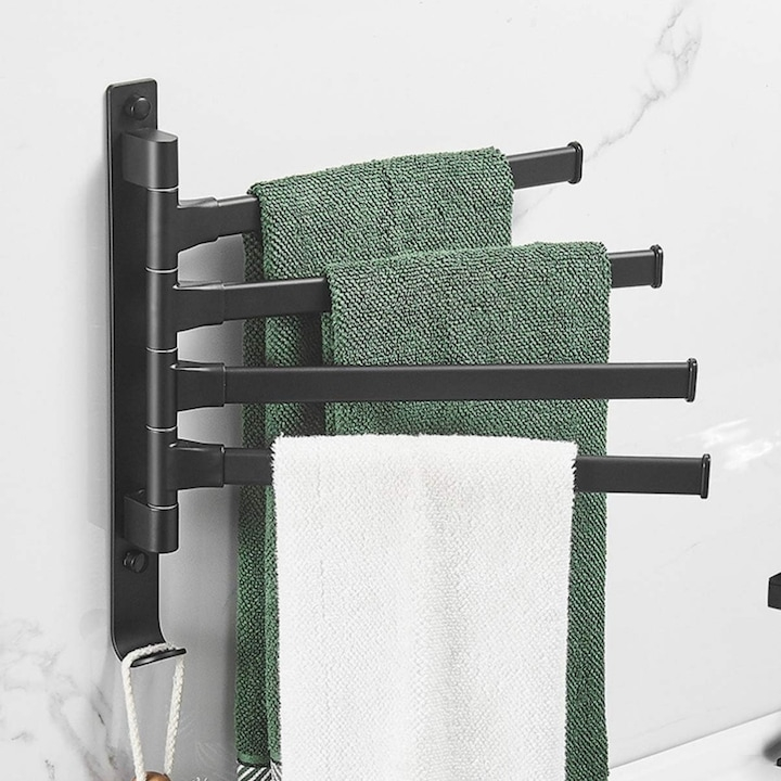 Organizare practica: Patru brate reglabile pentru prosoape si un carlig suplimentar pentru accesorii.