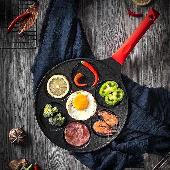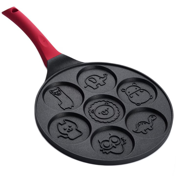 Tigaie pentru clatite VarioShop®, 7 modele de animalute, otel si aluminiu cu acoperire antiaderenta, atat pentru aragazul normal cat si pentru cel vitroceramic si electric, diametru tigaie 26 cm, diametru forma 7.5 cm, negru/rosu