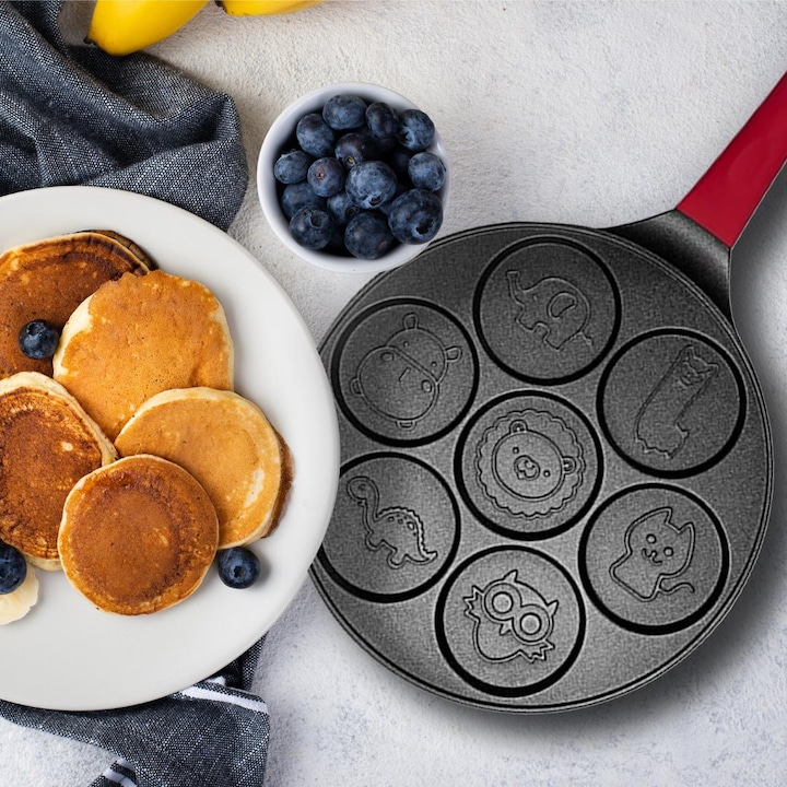 Dimensiuni Optime: Cu un diametru de 26 cm si o adancime de 1,3 cm, tigaia ofera suficient spatiu pentru prepararea clatitelor perfecte. Fiecare model de animalut are un diametru de 7,5 cm.