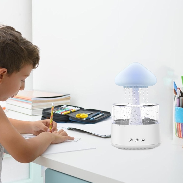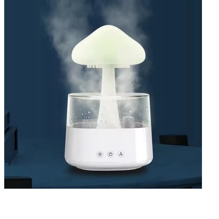 Umidificator VarioShop® cu efect de ploaie, aromaterapie si iluminare LED in forma de ciuperca, 8 culori, functionare silentioasa, capacitate 450 ml