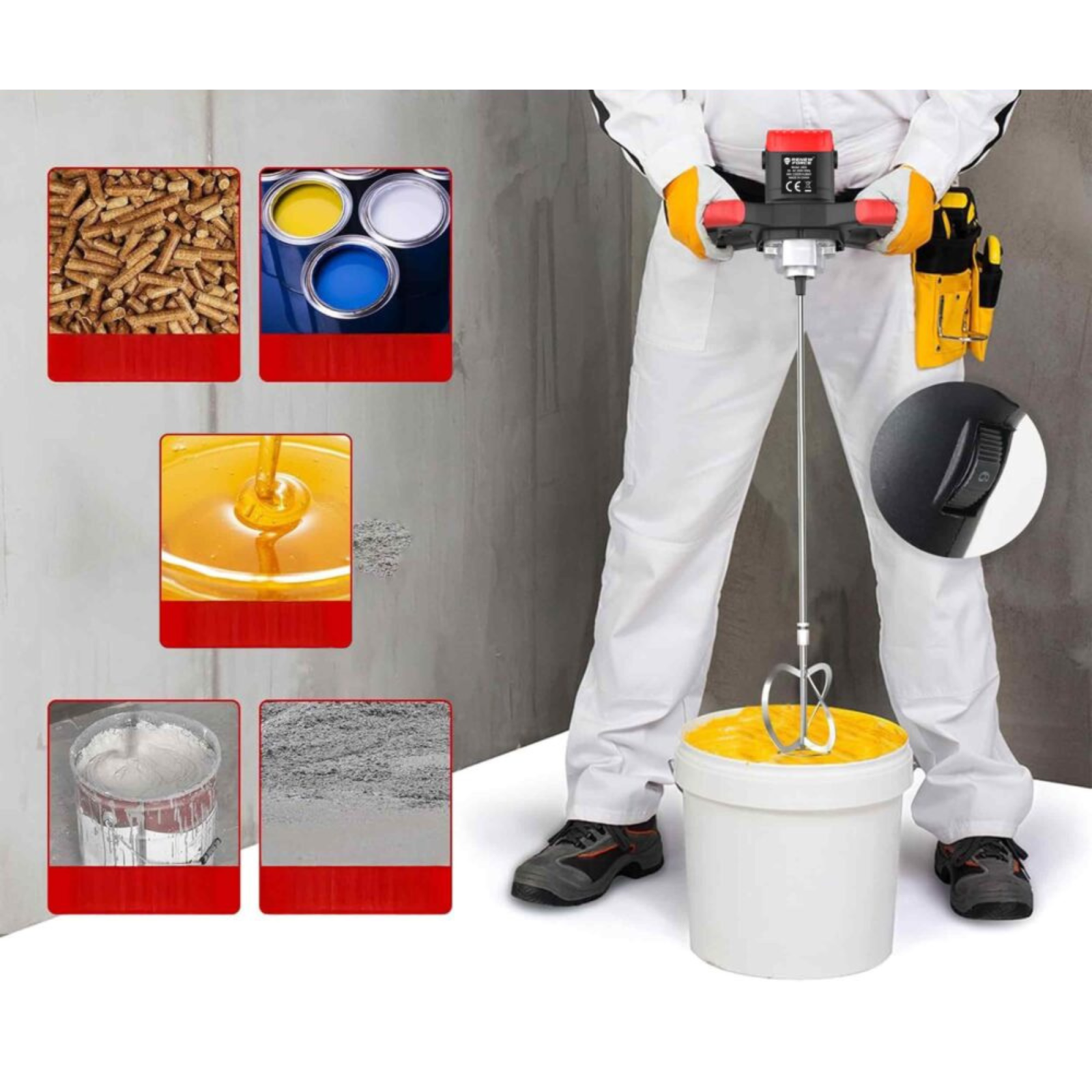 Descopera performanta si eficienta maxima in lucrarile de constructii si renovare cu mixerul electric profesional VarioShop® 2800W, un echipament puternic si fiabil, conceput pentru amestecarea rapida si uniforma a materialelor dense precum mortarul, adezivul, tencuiala sau betonul.