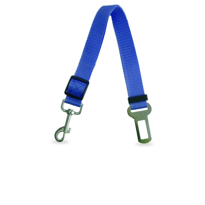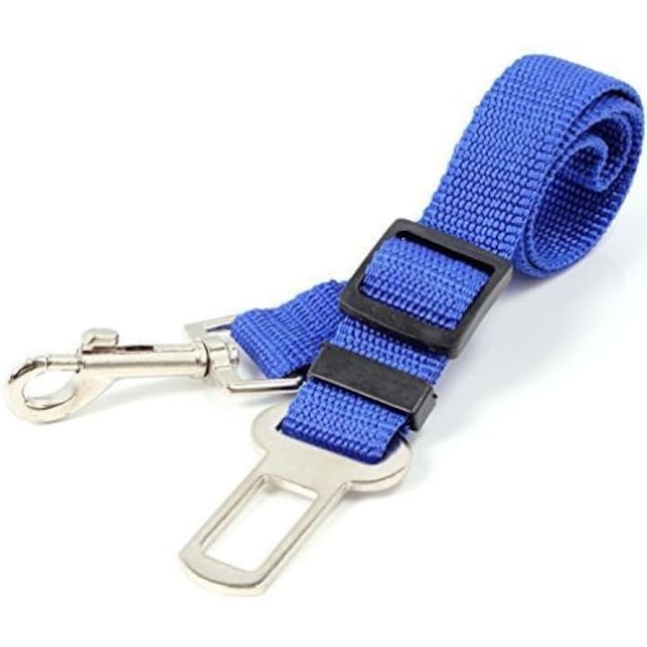 Centura de siguranta auto pentru caini si pisici VarioShop®, lesa, reglabila, design cu dublu sistem de siguranta, Albastru